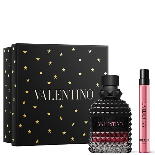 Este estuche de regalo Born in Roma Uomo Intense de Valentino es la elección perfecta para celebrar la temporada navideña con estilo y personalidad. Inspirado en la energía magnética de las noches romanas, este dúo de Eau de Parfum (50 ml y 10 ml) combina notas intensas de mandarina, salvia, cuero y vainilla para crear una fragancia sensual, potente y sofisticada. El frasco icónico Rockstud, con detalles inspirados en la arquitectura romana, añade un toque de lujo moderno. Este set encapsula el espíritu festivo de la autoexpresión y la elegancia, ideal para hombres que dejan huella.