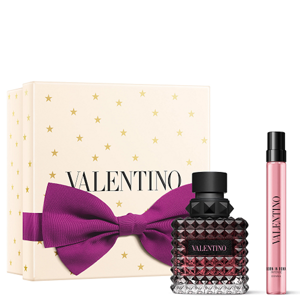 Valentino Born in Roma Donna Intense transforma esta temporada de fiestas en una experiencia deslumbrante. Esta edición limitada incluye el Eau de Parfum Intense de 50 ml y un práctico formato de viaje de 10 ml, envueltos en una caja decorada con estrellas doradas y un lazo festivo. Su fragancia floral ámbar destaca por una vainilla bourbon intensa, bergamota luminosa y grosella negra, seguida de un trío de jazmines que aporta una feminidad sensual y opulenta. La calidez del benjuí en el fondo refuerza el magnetismo del perfume, convirtiéndolo en el complemento perfecto para quien desea brillar con fuerza. Un regalo sofisticado y audaz para iluminar cualquier celebración.