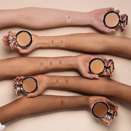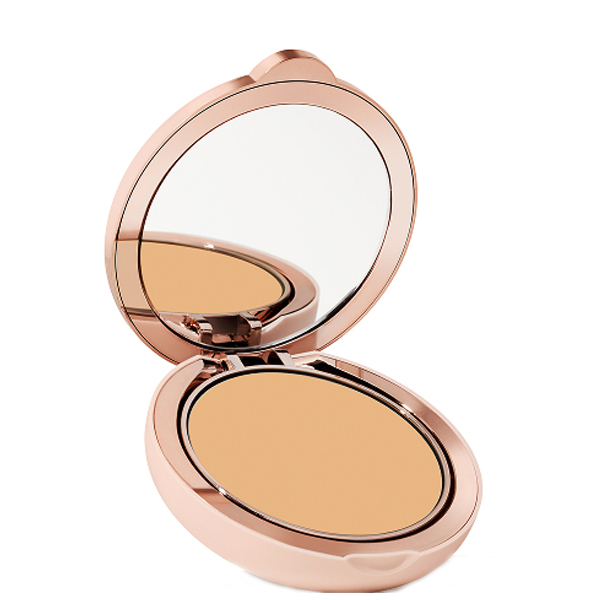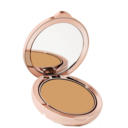 Maquillaje compacto con textura cremosa, cobertura ligera y efecto difuminador para una piel impecable con acabado satinado natural.